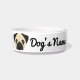 Diseño facial Pug de color alba con espacio para añadir el nombre de su perro o personalizar con un mensaje de su elección. El texto y el color de fondo se pueden cambiar seleccionando "Haga clic para personalizar más adelante".