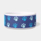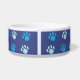 Un perfecto hueso y pata de perro imprime un tazón mascota personalizado para tu compañero canino. Personalizar que escriba el nombre de su perro en este tazón por un gran placer y para que su perro lo disfrute durante mucho tiempo. El bol es de diferentes tonos azules.
