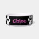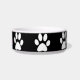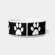 Este lindo tazón mascota de personalizable presenta huellas de pata blanca sobre un fondo negro. Personalice fácilmente este bol haciendo clic en Personalizar esta plantilla.
