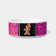 Su comida estará encantada de salir de este tazón de perro personalizado Chica Gingerbread Purpurina Rosa. Está diseñado con un elegante hombre de pan de jengibre en el centro, que contiene coloridos lopos girados y tiene caramelos redondos de arco iris para botones. La parte delantera tiene un fondo purpurina falso rosado. El nombre personalizado está escrito a mano en blanco. Hace una gran idea de regalo de Navidades para un perro chica.