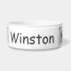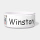 Un Bulldog inglés super lindo honra este divertido tazón de perro. Disfrutarás de la cena de perros con este adorable Bulldog inglés sonriente. ¡No olvides personalizarlo con el nombre de tu mejor amigo!