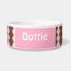 tazón mascota con patrón rosa y marrón. ¡Agrega tu nombre.