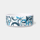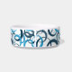 Cuenco mascota mostrado en blanco con acento impreso en un patrón de círculos azules. Elija entre un bol de tamaño medio o grande. Personalizar este tazón y agrega texto o trabajo de diseño o compra como está.