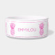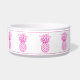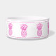 Este tazón de mascota tropical inspirado en la adormidera presenta piñas rosadas sobre blanco. Personaliza con tu elección de nombre o texto especial.