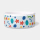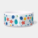 Colorido tazón mascota adorable con estepas, conchas y guijarros, hierba marina en verano. Podrá sumergirse en el ritmo relajante de las olas con nuestro patrón de alta playa del Océano. El tazón mascota presenta un adorable estilo inspirado en la belleza del océano, adornado con delicadas conchas marinas, pez estrella, algas, gotitas de agua y piedras. Cada elemento está intrínsecamente tejido en el diseño, creando una representación armoniosa y visualmente impresionante del paisaje costero. Los tonos claros del azul, el rojo, el amarillo y el verde imitan los colores del océano, evocando una sensación de calma y relajación y una brisa marina fresca. Deje que la belleza de la playa eleve a su mascota todos los días. El nombre es personalizable, por lo que puede personalizar el tazón estilo playa con el nombre del mascota u otro texto.