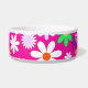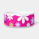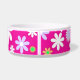 Un patrón de flor retro muy fresco hecho en rosa caliente en este maravilloso tazón mascota personalizado. También llevamos esto en otras combinaciones de colores y productos.