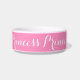 Cuenco mascota de tamaño medio mostrado en blanco con una franja de acento rosa caliente de color sólido con texto de princesa. Personalizar este tazón o compra como está. Elija entre un bol de tamaño medio o grande.