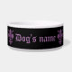 Una elegante pulga morada grisácea real sobre negro en un plato de comida para perros. Añade el nombre de tu perro.
