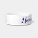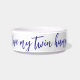 ¡Estás teniendo gemelos! Tu perro merece un regalo especial. Este adorable tazón de perro le agregará un poco de capricho al día de tu perro... y a tu también. Texto azul minimalista sobre un tazón blanco. Personalizable del mensaje