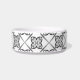 Cuenco mascota de cerámica blanca. Presenta una impresión abstracta de diamantes espumosos en un patrón geométrico que se envuelve con un fondo blanco. Hay dos tamaños disponibles para gatos o perros. Caja fuerte con microondas y lavavajillas.
