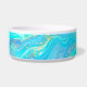 Añada algo de brillo a su hora de comida a sus mascotas con este recipiente de mascota abstracto de oro, agua y azul.