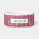 Add a cheerful touch to your pet’s mealtime with this personalized retro floral dog bowl, featuring a playful patchwork of vintage-inspired flowers in orange peach, golden yellow, and pastel pink flowers on a raspberry pink background. The quilt-style layout and whimsical details bring a cozy, cottage-inspired feel while still feeling fresh and modern. The nameplate is customizable to make it uniquely your pet’s or give as a gift. Pair with a matching customizable pet bandana and/or pet bed, in multiple colorways. Visit my shop to find your favorite!