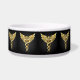 Símbolos dorados del Caduceus poligonal sobre fondo negro aislado. Símbolo de polos bajo de la medicina.