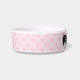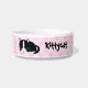 El Adorable tazón de gato personalizado presenta un ilustracion lindo de un gato blanco y negro tomando una siesta sobre un lindo fondo azul de pata. Personalice el nombre o el texto de su mascota. Bloqueado por el corazón