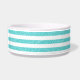 El moderno y divertido Sparkle Purpurina Look Stripes Dog Bowl. Este diseño presenta un patrón de rayas en turquesa con un aspecto purpurina brillante. Añadir texto a este diseño para darle un toque personal.