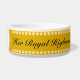 Para el mascota cuidado en exceso. La estropean quizá, pero su pequeña princesa lo merece. Personalice con el nombre de su querido. ¡Trate a su mascota como derechos con este cuenco que se quepa para una reina! El diseño está también disponible en una versión masculina.