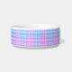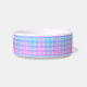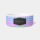 Tu perro amará este tazón de comida para mascotas lindo en un diseño moderno y trendy. El diseño presenta una parte superior a cuadros rosa y azul con etiqueta negra. Personaliza con el nombre de tu mascota para hacerlo aún más especial.