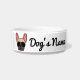 Trate a su frenchie a su propio tazón de perro personalizado. El diseño presenta una cara de bulldog francés de color claro y con espacio para añadir el nombre o personalizar a tu perro con un mensaje de tu elección. El texto y el color de fondo se pueden cambiar seleccionando "Haga clic en el personalizar más adelante". Elementos coincidentes disponibles.