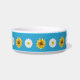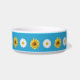Este tazón de comida o agua de cerámica sería un regalo considerado para un perro nuevo. El diseño presenta una encantadora margarita y una impresión de girasol sobre un fondo azul acuático. Personalice este tazón para perros con el nombre de su mascota.