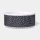 Un cuero negro falso rodea este tazón simple con un aspecto minimalista sencillo. Cuenta con el nombre de tu mejor amigo en una fuente divertida blanca, sombreada con rojo. Simplemente sustituye el nombre de tu mascota haciendo clic en el enlace "personalizar".