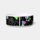 Un tazón de cerámica para perros super adorable, que hace el regalo perfecto. Diseño de ombre, hueso de perro holográfico de arcoíris con lámina, y huella de pata. Personalice el nombre y la inicial de su mascota editando la plantilla de texto.