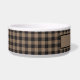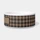 Tazón de cerámica rústico para mascotas con estampado de búfalo en negro y beige, monogramado con el nombre de tu mascota en el centro. Hay varios artículos que combinan en nuestra tienda, incluyendo collar, correa, placa de identificación y más.