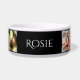 Cuenco de comida para perros personalizado al que añades fotos y tu nombre de perro. Simplemente elija la opción de personalización para actualizar los campos. El color de fondo se puede cambiar con la opción personalizar. 203-302-0337 HAMbyWhiteGlove. Mostrado en negro.