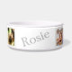 Cuenco de comida para perros personalizado al que añades fotos y tu nombre de perro. Simplemente elija la opción de personalización para actualizar los campos. El color de fondo se puede cambiar con la opción personalizar. 203-302-0337 HAMbyWhiteGlove.