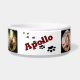Cuencos de comida para perros personalizados en blanco y negro a los que añades fotos y tu nombre de perro. Simplemente elija la opción de personalización para actualizar los campos. El color de fondo detrás del nombre y el color del texto se puede cambiar de blanco/negro con la opción personalizar. 203-302-0337 HAMbyWhiteGlove.