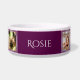 Cuenco de comida para perros personalizado al que añades fotos y tu nombre de perro. Simplemente elija la opción de personalización para actualizar los campos. El color de fondo se puede cambiar con la opción personalizar. 203-302-0337 HAMbyWhiteGlove. Mostrado en Amethyst.