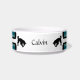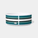 El tazón de comida para perros de cerámica blanca con cuatro tiras de tono, blanco y negro como base, y cualquier color de coordinación que elija en la opción "personalizar" (dentro de la opción personalizada) aparecerá en dos tonos .HAMbyWhiteGlove. Se muestra aquí en un verde azulado, blanco y negro.