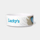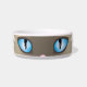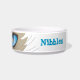 Un adorable tazón mascota que tiene cerca un gato siamés con ojos azules. Muy divertido para cualquier amante de los gatos y genial si tienes un gato blanco para hacerlo personal.