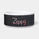 Un cuero negro falso rodea este simple tazón con un aspecto minimalista sencillo. Cuenta con el nombre de tu mejor amigo en una divertida tipografía blanca, sombreado con rojo. Simplemente sustituye el nombre de tu mascota haciendo clic en el enlace "personalizar".