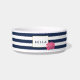 ¡Apártate! Este tazón mascota presenta un fondo atrevido de rayas azul marino y blanco, un borde falso dorado y un peón rosa bonito con acuarelas suaves. Coordina con nuestros suministros de oficina, productos de papel y accesorios de la Marina Stripe & Pink Peony. Personalizar con un monograma, nombre o texto de su elección!