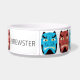 Este tazón de mascota presenta un oni demonio del folclore japonés tradicional en un patrón repetido azul y rojo. ¡Personalízalo con el nombre de tu mascota!