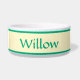 Agrega un toque de elegancia al espacio de comedor de tu mascota con este tazón de mascota chic. Con un fondo amarillo suave, el nombre de tu mascota se muestra hermosamente en una fuente verde elegante, combinando estilo moderno y encanto atemporal.
