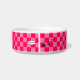 El tazón de comida para gato hecho de cerámica blanca tiene un hermoso diseño de damero rosa de dos tonos y un fondo gris para el nombre de tus mascotas. Sólo tienes que añadir el nombre de tus gatos en la opción de personalización. Su nombre aparecerá entre los gráficos de los dos gatos. ... HAMbyWhiteGlove.