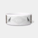 El tazón de comida para gato hecho de cerámica blanca tiene un aspecto falso, de tela orgánica como fondo. Agregue el nombre de sus mascotas al símbolo del sistema personalizado y su nombre aparecerá entre los gráficos de los dos gatos. HAMbyWhiteGlove.