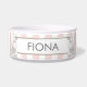 Este tazón mascota tiene un fondo de rayas rosas y blancas. Hay una pancarta con un caniche a ambos lados y un lugar para personalizar con el nombre de tu mascota. El complemento perfecto para una decoración parisina o chic.