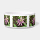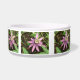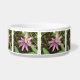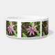 Este impresionante tazón mascota muestra una detallada fotografía de una hermosa pasionaria rosa con bordes violetas y brotes amarillos brillantes. Esta flor de bonito se encuentra en países tropicales. La foto fue tomada usando macrofotografía para un resultado detallado.