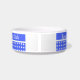Un tazón inteligente, personalizable, mascota, con un diseño de puntos polka azul y blanco creado digitalmente por Judy Adamson.