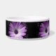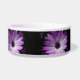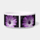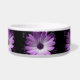 Este impresionante tazón mascota presenta una hermosa y detallada fotografía de una flor de margarita africana. La foto ha sido alterada digitalmente, resultando en una flor de color púrpura bonito con diferentes matices de morado en los pétalos y un centro morado oscuro.
