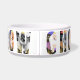Este hermoso plato para mascotas de alta calidad presenta un chow de color crema, azul, rojo y negro dentro de las letras. CHOW se repite 3 veces alrededor del tazón intercalado con corazones tonos dorados!! Muy duradero y fácil de limpiar!!