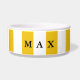 Tazón para perro moderno chic con rayas amarillas y blancas.