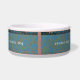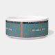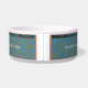 El diseño gráfico original de ZoeSPEAK en este Tazón de Perro fue creado a partir de un escaneo de una tira de película de 35 mm. Los colores de fondo son tonos azules y oxidaciones. Los colores de las tiras de película son azul acuático mudo y marrones dorados. La parte superior de la tira de película, donde se dobla, es negra con luces azul acuático. La línea de texto blanco, que dice "perro estudio", está configurada para personalizar, usar tal como está, o borrar.