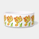 Esta ensalada que sirve bol lleva un cuadro llamado "Fiery Tulip" de mi parte. Se llama así pues las estriaciones en sus pétalos parecen llamas de fuego en un fondo de amarillo cálido. La primavera se acaba rápidamente y los tulipanes desaparecen pronto, pero con este producto se puede disfrutar de su encanto durante todo el año.