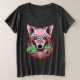 Ilustración audaz de lobo con estilo surrealista: pelaje rosa y rojo, ojos penetrantes y disparejos, y un giro macabro al sujetar una mano de zombi. Un diseño vívido y simbólico perfecto para los fanáticos del arte de fantasía oscura y la mercancía llamativa