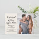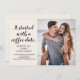 "Cómo empezó" invitación de fotos de compromiso. Personaliza tu foto y tu texto. Nuestro texto dice: "Comenzó con una cita para el café... Ahora tengo un anillo en el dedo". ¿Cómo comenzó tu relación? Contáctame para obtener ayuda para que tu historia encaje en esta tarjeta.