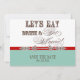 Las fuentes elegantes y divertidas anuncian el mensaje "¡Vamos a comer, beber y casarnos!" en un delicioso conjunto de invitaciones de boda caprichosas. En una cálida paleta de colores retro de rojo vintage, azul aqua, crema y marrón chocolate, es lo mejor de lo vintage con un toque moderno. El lado frontal tiene el texto "Guarde la fecha" y la fecha de su boda. En el reverso hay dos adornos de impresora con una elegante fuente de caligrafía manuscrita y el texto "Celebre con nosotros" en fuentes únicas y divertidas junto con la información de su invitación de guardar la fecha, disponible en un conjunto completo de productos con este diseño y podemos hacerlo en cualquier combinación de colores que desee.
