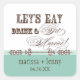 Las fuentes elegantes y divertidas anuncian el mensaje, "¡Comamos, bebamos y casémonos!" en un maravilloso y caprichoso Ensamblado de Invitación a la Boda. En una paleta de colores clara, crujiente, azul acuático, marrón chocolate y blanco, es lo mejor de la cosecha con un toque moderno. El pegatina o sello tiene el texto y sus nombres con la fecha de su boda. Hay una completa serie de productos disponibles con este diseño y podemos hacerlo en cualquier combinación de colores que desee.